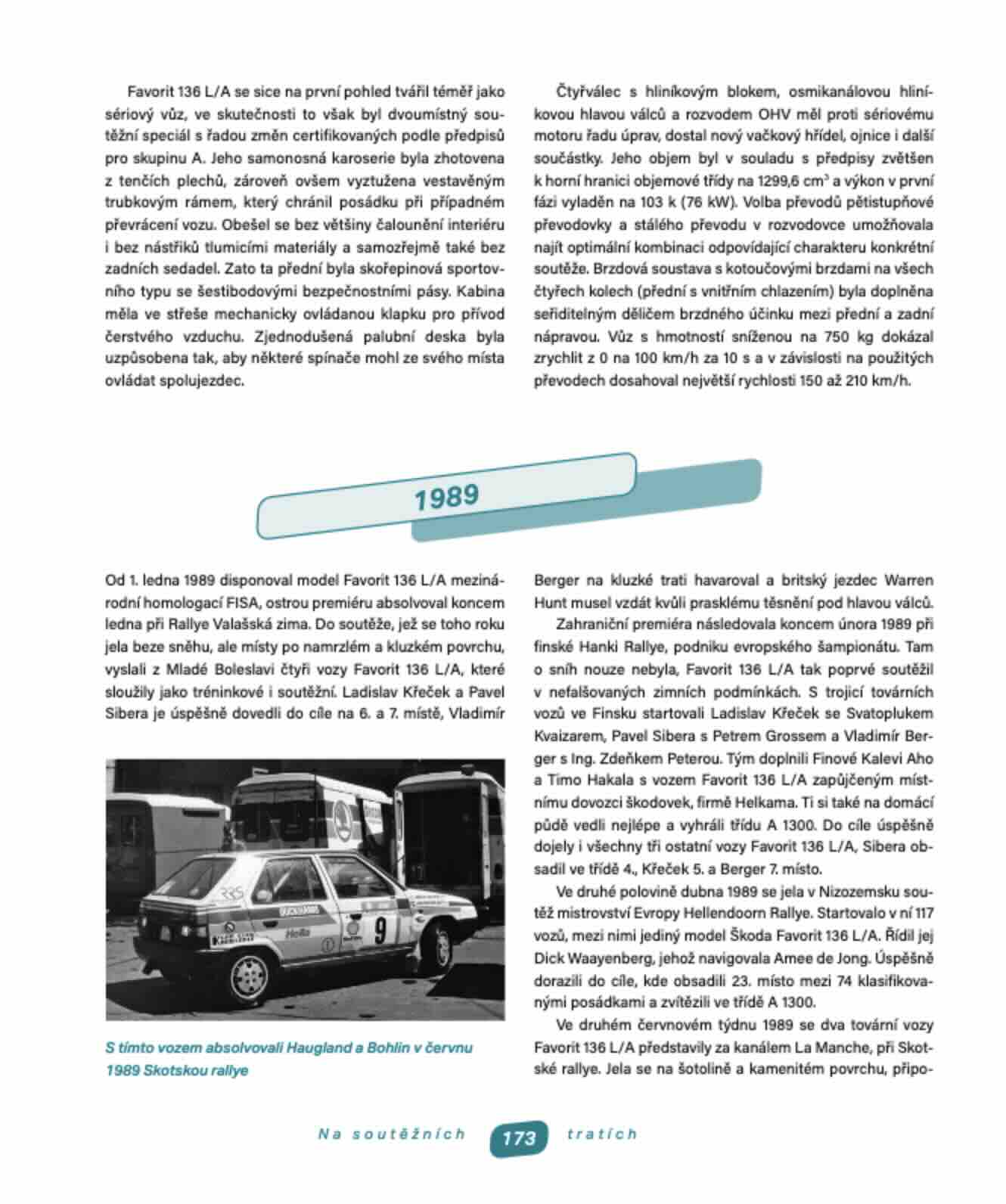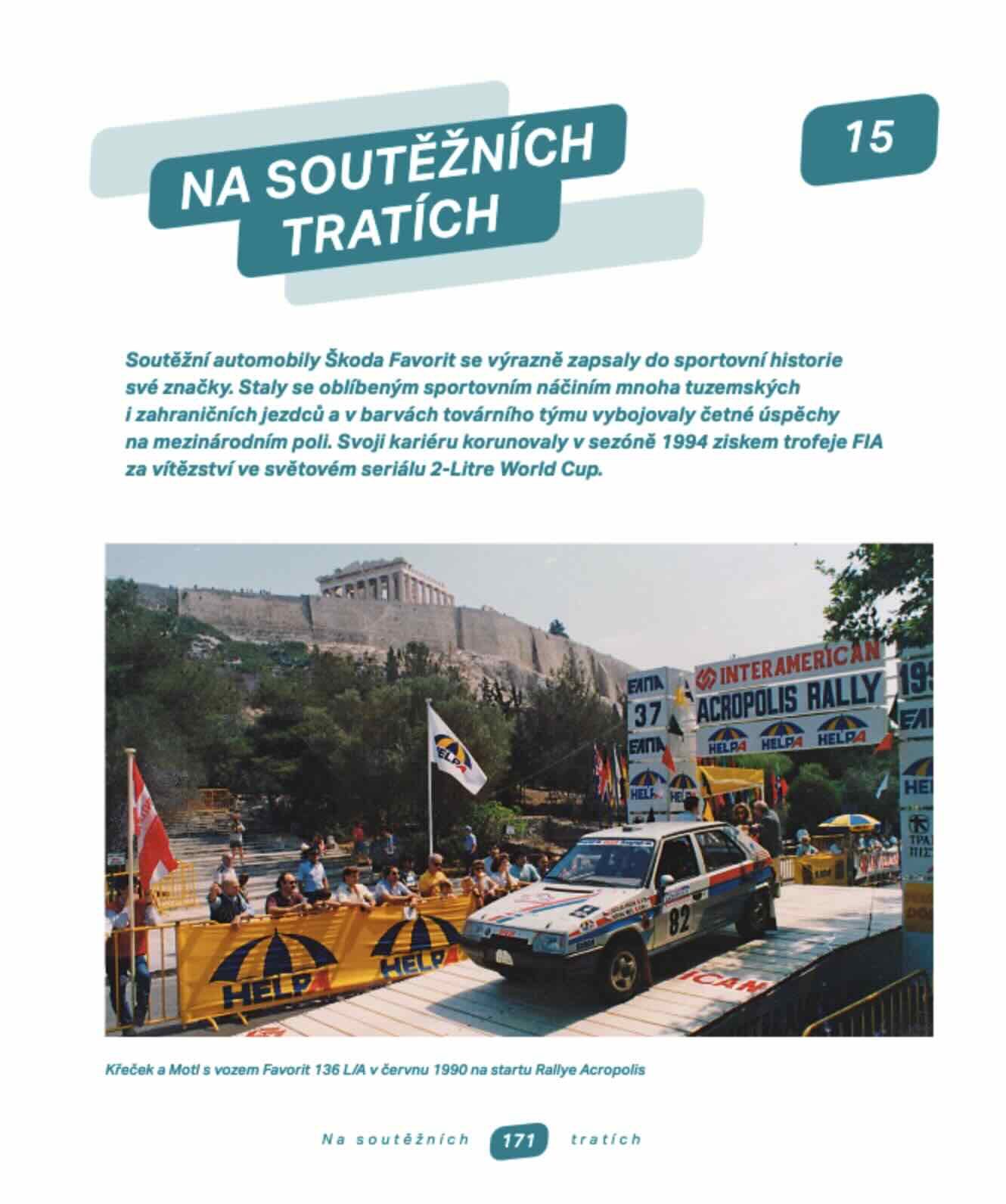 Milovníky motoristického sportu potěší přehled aktivit s upravenými vozy Škoda Favorit v automobilových soutěžích i v závodech na okruzích a do vrchu. Text obsahující technické údaje jednotlivých modelů i přehled výroby a exportu doprovází 430 archivních fotografií, z nichž řada nebyla dosud publikována.