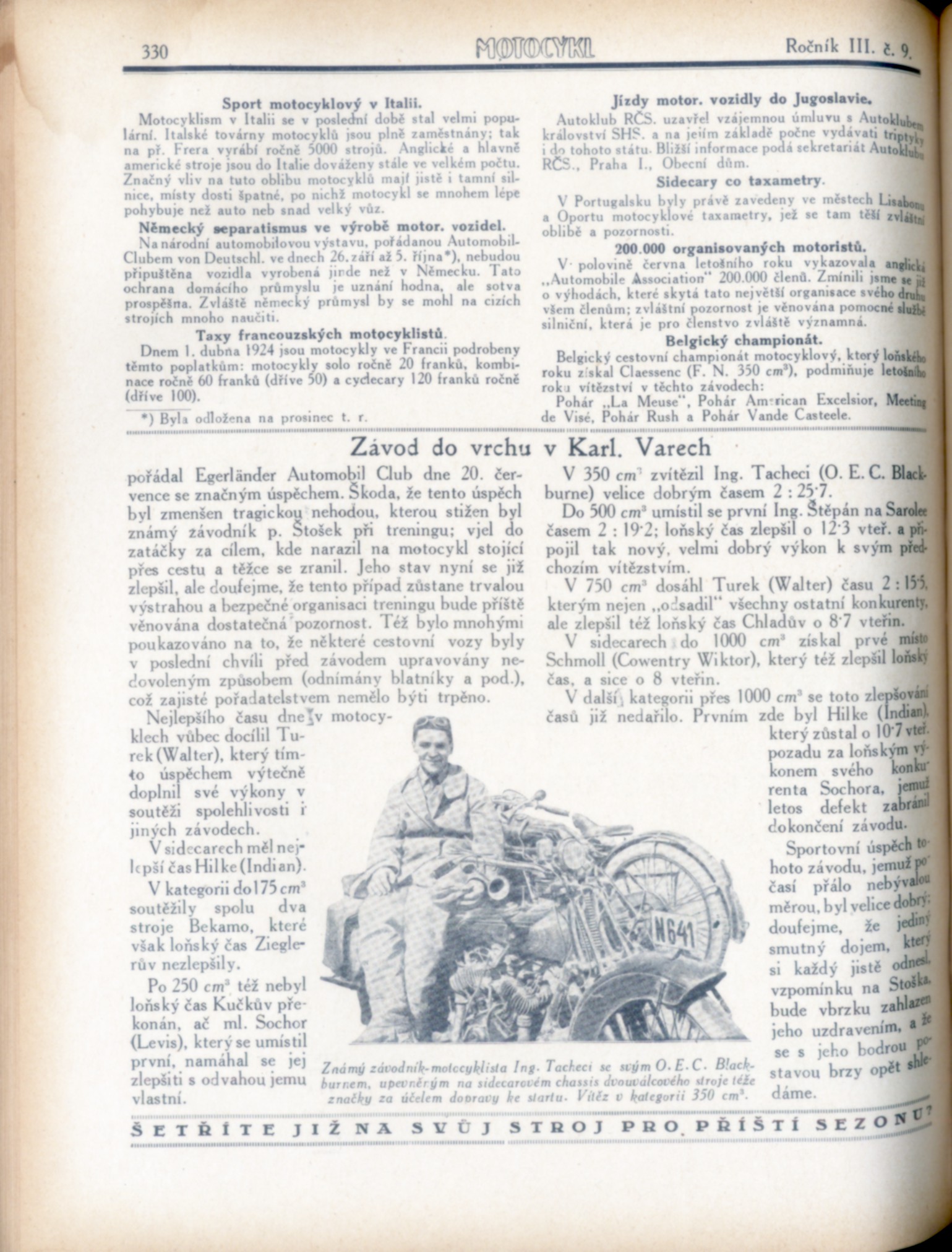 Nejrozšířenější český časopis pro motoristický sport dvacátých let. Kompletní III. ročník 1924