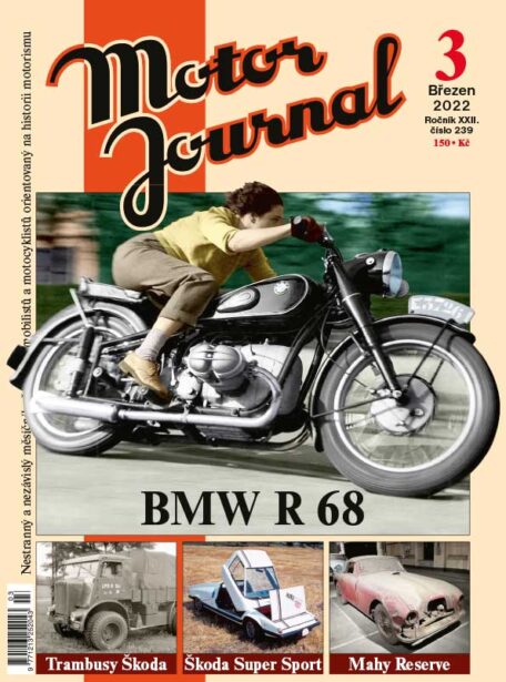 Březnový Motor Journal XXII. ročníku s pořadovým číslem 239 vychází v pátek 4. března 2022. Titulní strana s motocyklem v náklonu a trojice zajímavých automobilů lákají k podvečernímu klidu pro zjištění celého obsahu. Pár drobností z Moravy jako námět úvodníku, foto Zašlé časy a už se otevírá nekonečná mozaika Hrst hřebíků ze silnice. To jsou technické novinky jako např. první jízda s automobilem opatřeným rozvodem Knight, další technické novinky s praktickým využitím až po navždy odložené nápady, jména konstruktérů, závodníků, ale i objetí automobilových a motocyklových závodů. Poválečnou dobu připomínají ruiny výrobních závodů, výročí vyrobení miliontého jeepa, Ženevský autosalon 1952, Lipský jarní veletrh 1962, úspěch motokrosových čezet v mistrovství světa a mnoha dalších zajímavých údajů až po pozvánku do obměněných expozic Muzea Czech Road Racing v Hořicích. Atraktivní sportovní kupé na škodováckých základech, to byly pokusy 60. let – čtěte Škoda Super Sport / Ferat. Nabídky evropských automobilek v poválečné době omezily klasická provedení s kapotou – sledujte vývoj Trambusy Škoda. Výběr krásných trofejí z výstavy Technického muzea v Praze přibližují následující stránky – Vavříny s vůní benzínu – Meziválečný československý automobilový sport. Jaké je možné objevit unikáty v expozicích zahraničních muzeí, se dozvíte pod titulky Kolozvědná expedice III Mahy Reserve. Veteránsalon březnového MJ je věnován motocyklu, obsahem zajímavou monografii hledejte pod nadpisem První sériový stomílový motocykl Německa BMW R 68. Hluboký citový vztah a nadšení k jedné z motocyklových disciplín je cítit ze zpovědi člověka, který osobně odzkoušel s motocykly snad všechno – čtěte Šlapačky. O jaké položky v aukci se podělili koupěchtiví účastníci v Paříži, se dozvíte na dvoustraně RM Sotheby’s Paris. Britská aukční síň Bonhams uspořádala Aukce pod Eiffelovkou, kde bylo prodáno 90 automobilů ze 111 nabízených. Kouzlo místa s bohatou historií, to je Aerautodromo Modena, dříve Ferrariho eldorádo, dnes rajon afrických dealerů.