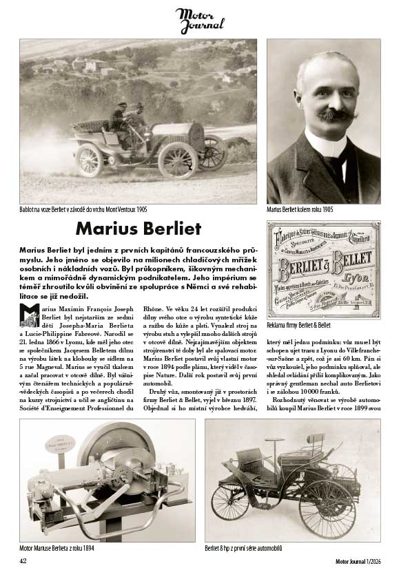 Marius Berliet byl jedním z prvních kapitánů francouzského průmyslu. Jeho jméno se objevilo na milionech chladičových mřížek osobních i nákladních vozů. Byl průkopníkem, šikovným mechanikem a mimořádně dynamickým podnikatelem. Jeho impérium se téměř zhroutilo kvůli obvinění ze spolupráce s Němci a své rehabilitace se již nedožil.