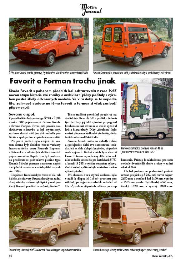Škoda Favorit s pohonem předních kol odstartovala v roce 1987 novou etapu historie své značky a ambiciózní plány počítaly s výrobou pestré škály odvozených modelů. Ve víru doby se to nepodařilo, zajímavé variace na téma Favorit a Forman si však zaslouží připomenutí.