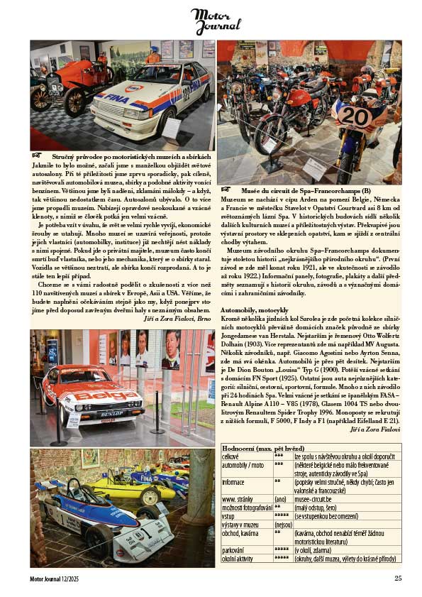 Stručný průvodce po motoristických muzeích a sbírkách – Musée du circuit de Spa–Francorchamps (B)