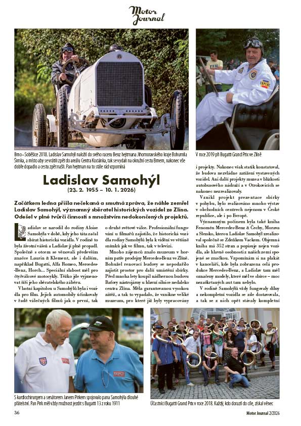 Začátkem ledna přišla nečekaná a smutná zpráva, že náhle zemřel Ladislav Samohýl, významný sběratel historických vozidel ze Zlína. Odešel v plné tvůrčí činnosti s množstvím nedokončených projektů.