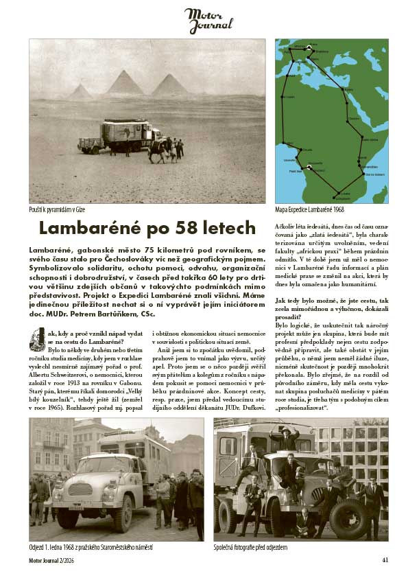 Lambaréné, gabonské město 75 kilometrů pod rovníkem, se svého času stalo pro Čechoslováky víc než geografickým pojmem. Symbolizovalo solidaritu, ochotu pomoci, odvahu, organizační schopnosti i dobrodružství, v časech před takřka 60 lety pro drtivou většinu zdejších občanů v takovýchto podmínkách mimo představivost. Projekt o Expedici Lambaréné znali všichni. Máme jedinečnou příležitost nechat si o ní vyprávět jejím iniciátorem doc. MUDr. Petrem Bartůňkem, CSc.