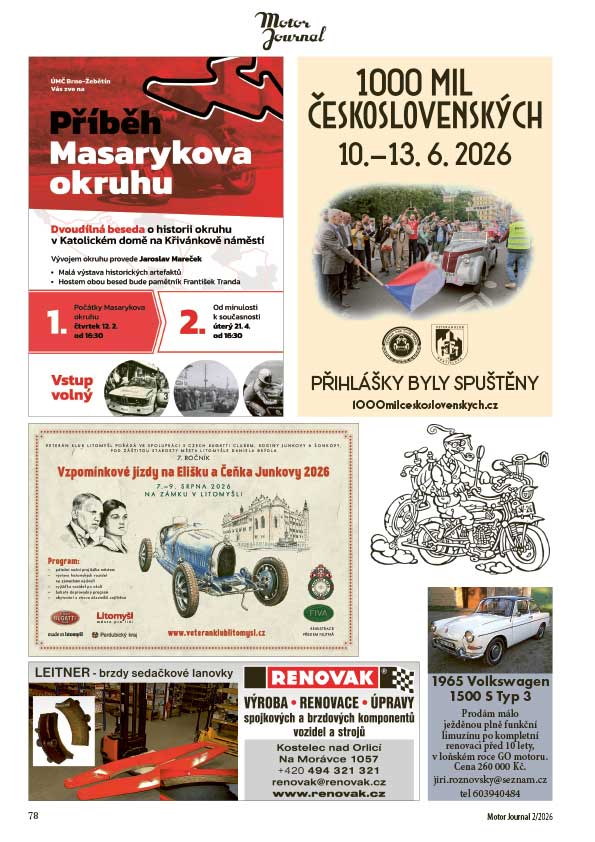 Kalendář akcí, inzerce soukromá i komerční, to je obsah posledních stránek dalšího letošního výtisku Motor Journalu.
