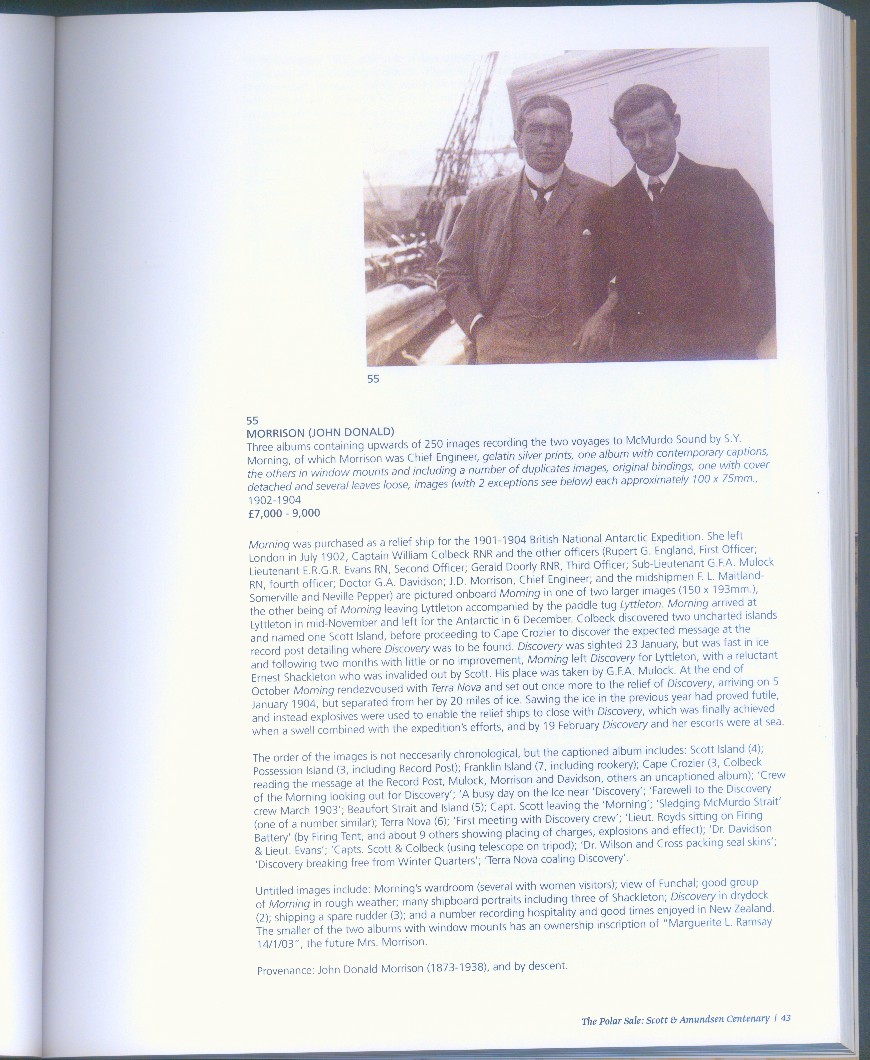 Katalog aukční síně Bonhams z aukce konané v Londýně 30. března 2012. Aukce nabídla nejrůznější předměty spojené s polárními výpravami Roalda Amundsena a Roberta Falcona Scotta. Prodávaly se písemné dokumenty, deníkové záznamy, knihy, fotografie, ale také součásti vybavení. Vše důkladně popsáno. Unikátní publikace pro všechny milovníky chladných končin světa, která jim osvělí mnohé souvislosti.